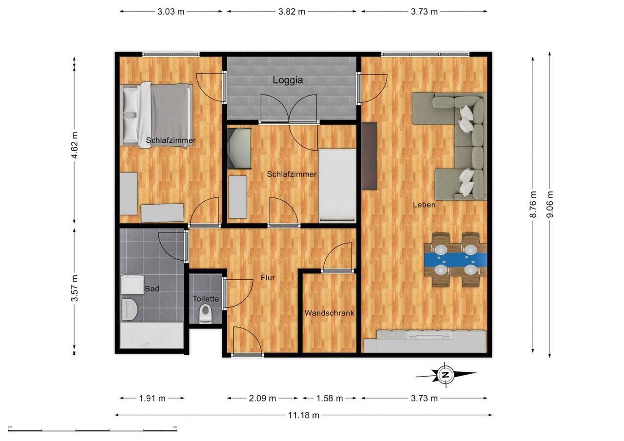 Vom Wohnraum aus haben Sie– wie auch von den beiden Schlafzimmern - Zugang zu Ihrer geräumigen Loggiamit Pflanztrögen: Der perfekte Ort, um frische Luft zu tanken, den Frühstückskaffee zu genießen oder abends den Elektrogriller anzuwerfen.