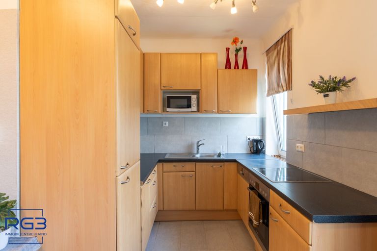 Die vorhandene Einbauküche fügt sich harmonisch in das Gesamtbild ein und bietet eine praktische sowie sofort nutzbare Lösung für den Alltag.