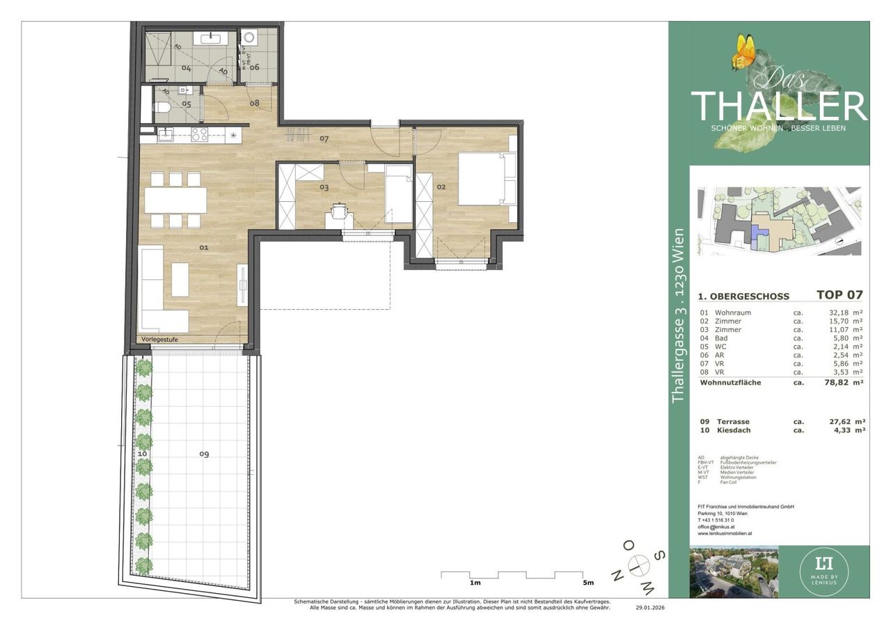 DAS THALLER kombiniert Wohnraum mit enormen Glückspotential mit allen Vorteile eines sicheren Lebens im Grünen als auch die gute Erreichbarkeit des Stadtzentrum zu gewährleisten.