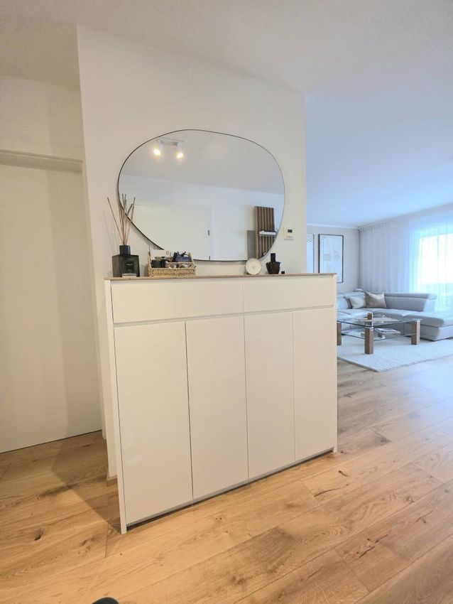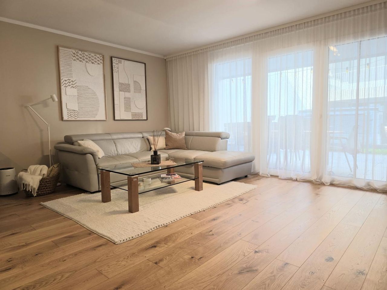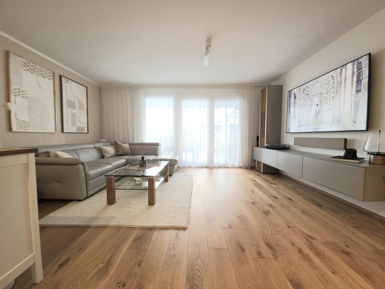 Vom zentralen Vorraum aus erreichen Sie alle Räumlichkeiten barrierefrei. Durch das Wohnzimmer, mit einer Glasfront und Schiebetür geht es auf die sehr große, überdachte Terrasse/16m². Die gesamte Wohnung wird mittels Fußbodenheizung beheizt und bietet sehr moderne und hochwertige Ausstattung.