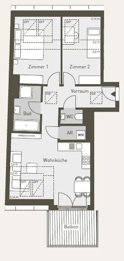 Die Wohnung besticht durch eine durchdachte Raumaufteilung mit einer offenen Wohnküche, die zum gemeinsamen Kochen und gemütlichen Beisammensein einlädt. Hochwertige Fliesen und edles Parkett schaffen eine warme, einladende Atmosphäre. Das Badezimmer ist mit einer Badewanne und einer separaten Dusche ausgestattet – ideal zum Entspannen nach einem langen Tag. Ein besonderes Highlight ist der sonnige Südbalkon, der Ihnen viel Platz für Erholung an der frischen Luft bietet.