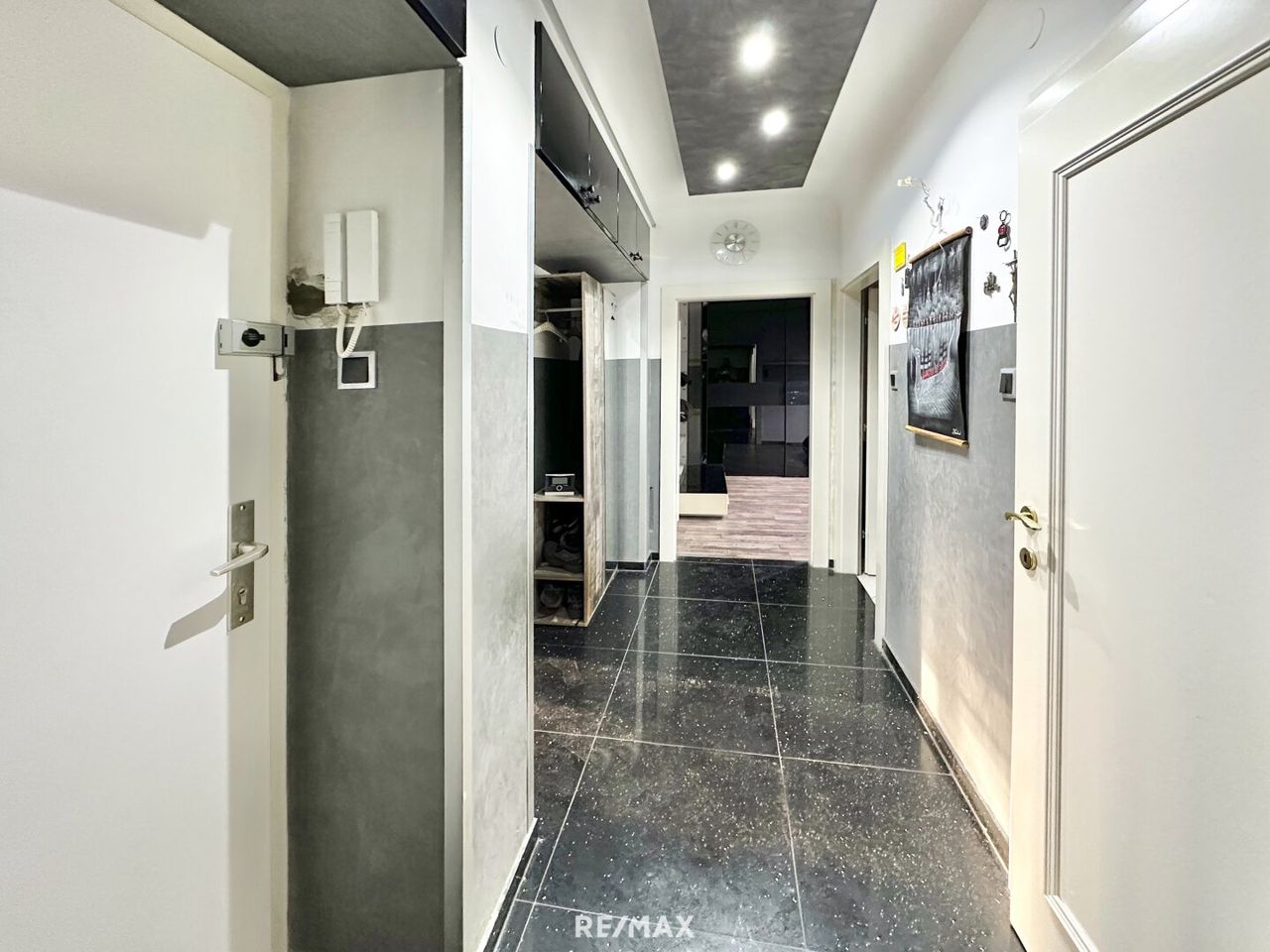Im 1.Stock (ohne Lift) betreten Sie die Wohnung. Das Vorzimmer bietet Platz für Garderobe etc. und von da geht es weiter: