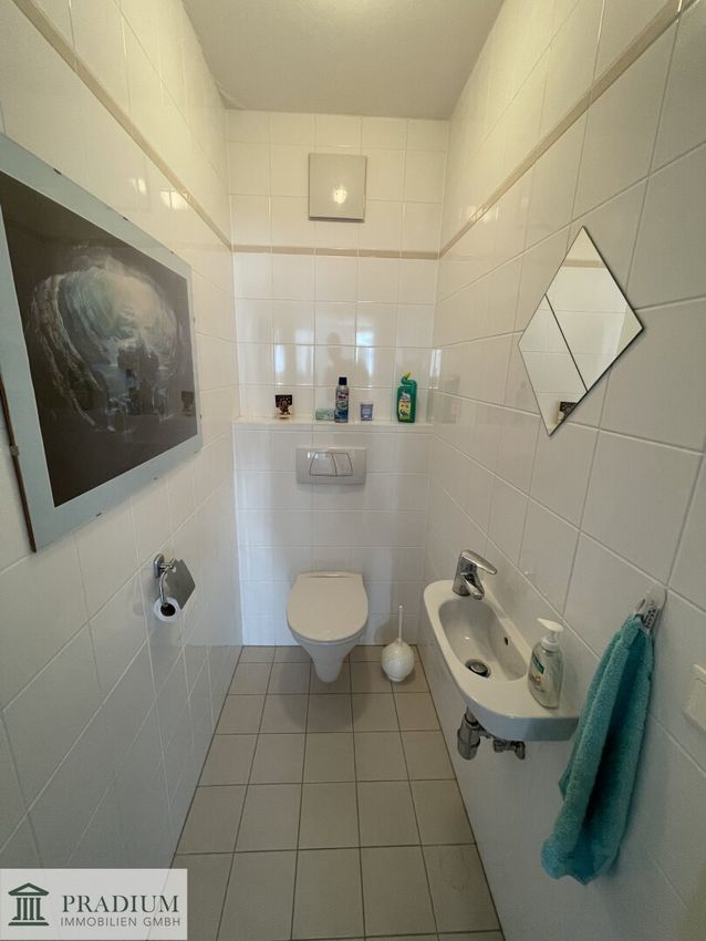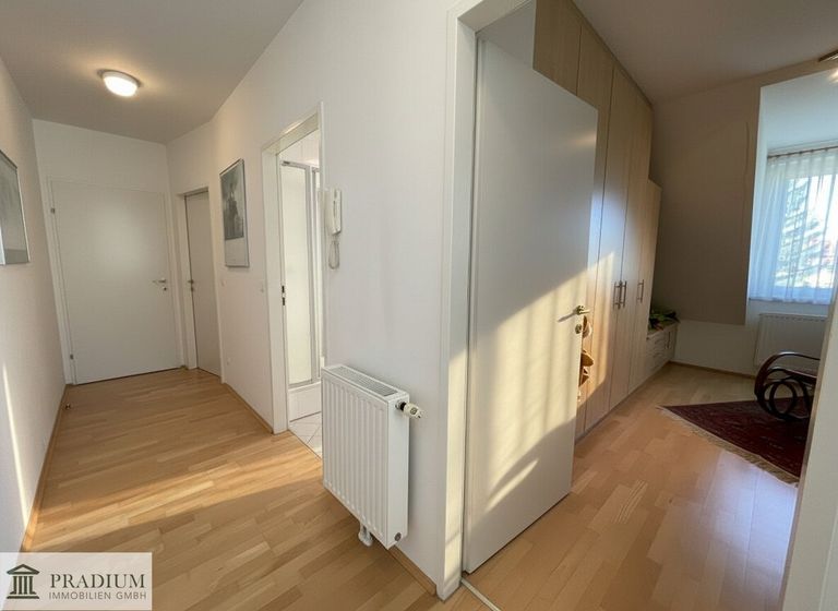 Die gesamte Hausanlage besticht durch einen durchwegs gepflegten ersten Eindruck, der schon beim Betreten des Grundstückes überzeugt. Über das verglaste Stiegenhaus im 2. Stock angelangt betritt man die Wohnung und befindet sich im Vorraum der Wohnung. Hier findet die Garderobe ihren Platz und man hat linker Hand sofort das Gäste-WC.
