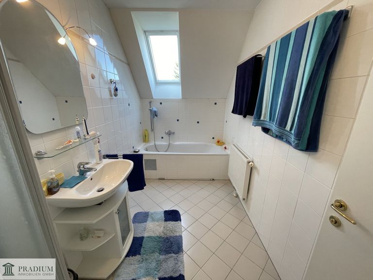 Obere Wohnebene: - Vorraum/Gang - Ankleidezimmer/Schlafzimmer/Kinderzimmer/Home-Office - Badezimmer mit Dusche und Badewanne - großes Schlafzimmer - WC