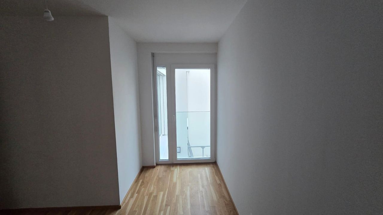 Die hier angebotene Wohnung verfügt über zwei zirka gleich große Schlafräume, die jeweils über ein bis zum Boden gehendes Fenster verfügen.
