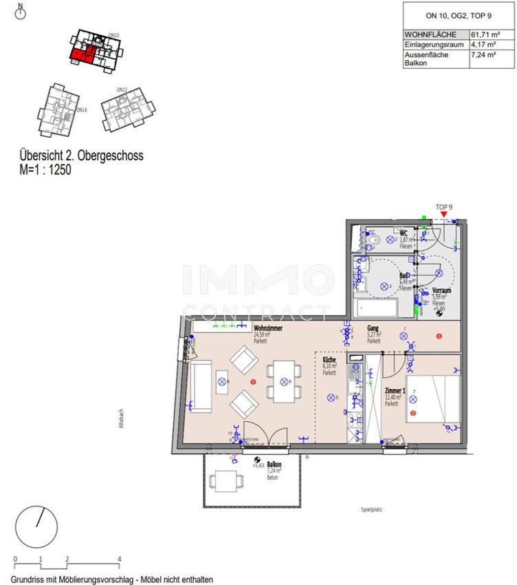 1 Stellplatz ist für Sie bereits in der hauseigenen Tiefgarage reserviert und kann um € 17.000 erworben werden.