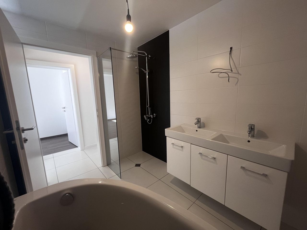 Die Schlafräume sind großzügig dimensioniert und bieten ausreichend Platz für Doppelbett, große Schränke und zusätzliche Möbel. Ruhig gelegen und optimal belichtet – perfekte Rückzugsorte. Das Badezimmer, modern, zeitlos und hochwertig ausgestattet. Klare Linien, elegante Fliesen und durchdachte Anordnung der Sanitärelemente sorgen für Komfort und Stil.