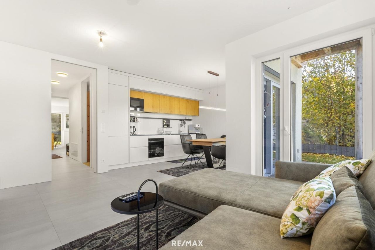 Ein besonderes Highlight sind die beiden Terrassen mit jeweils ca. 22,64 m² und 8,09 m² sowie der ca. 158,06 m² große Gartenbereich – eine Oase, die zum Entspannen und Genießen einlädt. Die gepflegte Außenanlage fügt sich harmonisch in die Umgebung ein und bietet direkten Zugang zu Spazier- und Radwegen rund um den Wörthersee. Auch das Strandbad Schiefling ist fußläufig in 5 Minuten erreichbar.