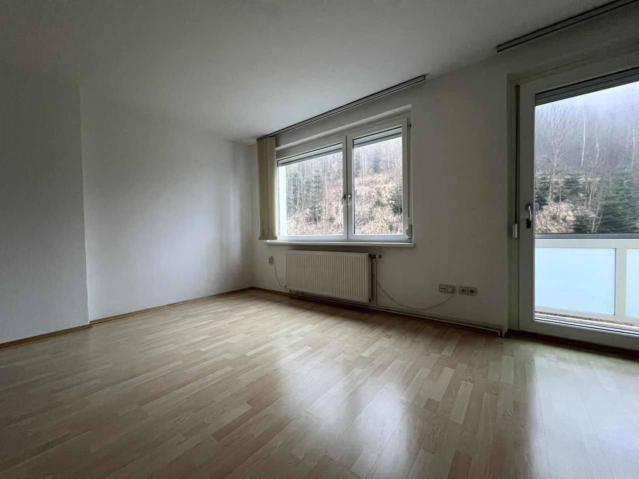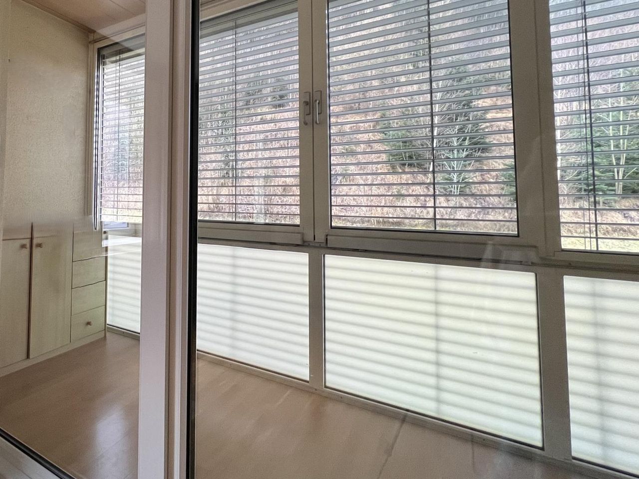 Der Wintergarten und der Balkon mit Aussicht sind ruhig gelegen, bieten einen Blick ins Grüne und laden zum Entspannen ein. Von Wohn-/Esszimmer aus gelangen Sie in den Wintergarten, der den Wohnraum optisch nach außen erweitert, während ein weiteres Zimmer Zugang zum Balkon bietet.