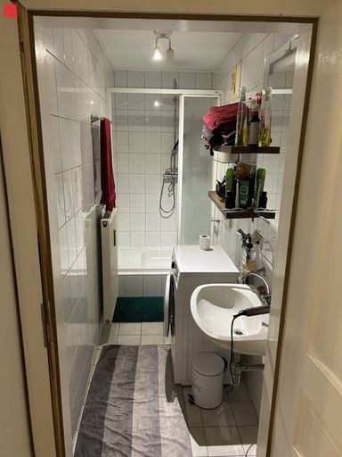 Ein modernes Bad mit Dusche lädt zum Entspannen ein, während die durchdachte Ausstattung mit Kabel- und Satellitenanschluss sowie einer umweltfreundlichen Fernwärmelösung zeitgemäßen Wohnkomfort garantiert.