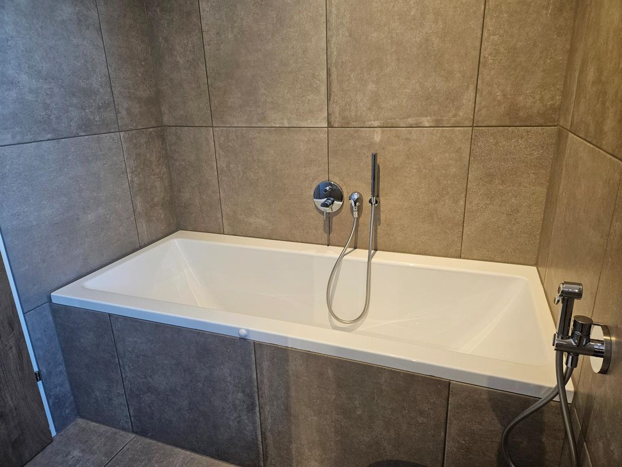 Badezimmer: Stilvoll gestaltetes Bad mit modernen Armaturen.