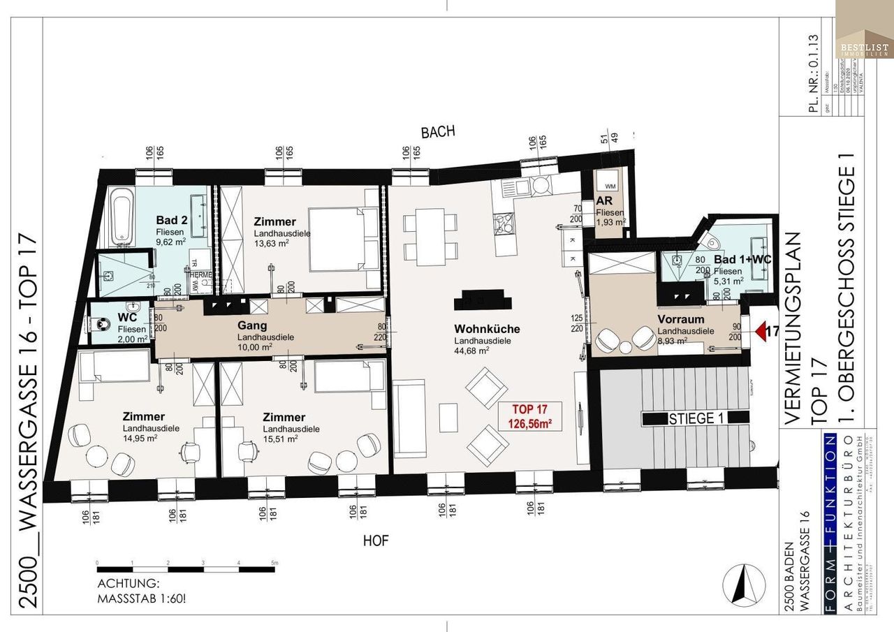 Diese attraktive 4 Zimmer-Wohnung mit einer Wohnfläche von 126,56 m2 teilt sich wie folgt auf: