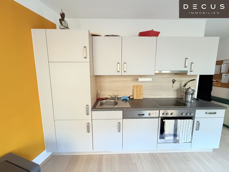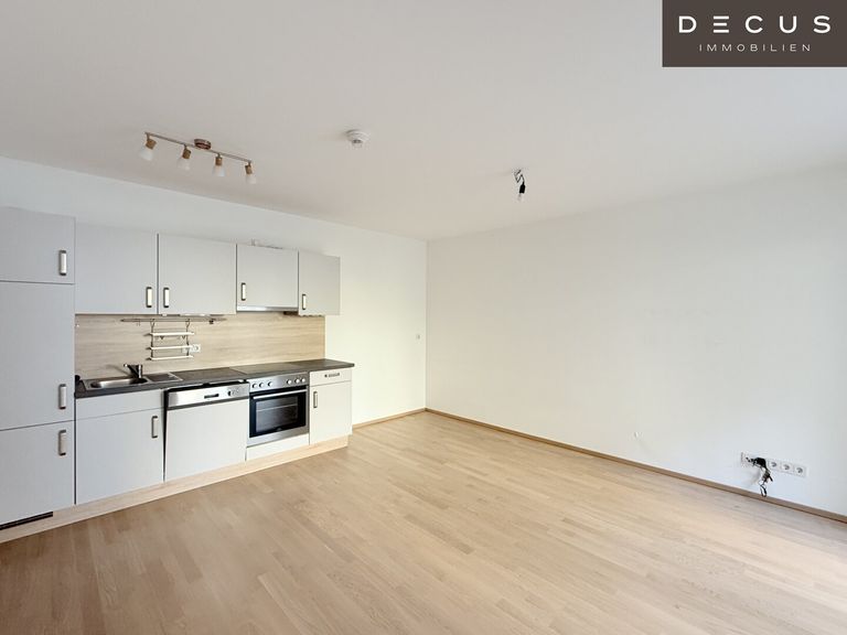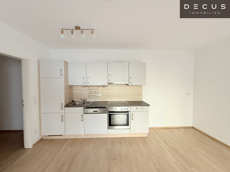 Zur inkludierten Ausstattung in der Wohnung zählen eine qualitativ hochwertige Küche, ein Badezimmer mit edlen Fliesen und hochwertige Parkettböden in allen Wohnräumen.