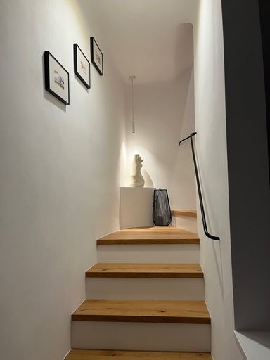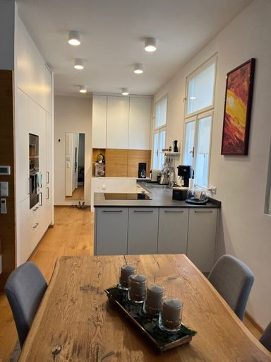 Die besondere Wohnatmosphäre entsteht durch das Gesamtensemble: Die idyllische Lage im Schlossergässchen, das Wohngefühl in den alten Gemäuern des Hauses aus dem 18. Jahrhundert, den modernen, offenen und hellen Wohnbereich mit seiner sehr hochwertigen Ausstattung und den wunderbaren Blick in und über das Schlossergässchen & den Gutenbrunner Park.