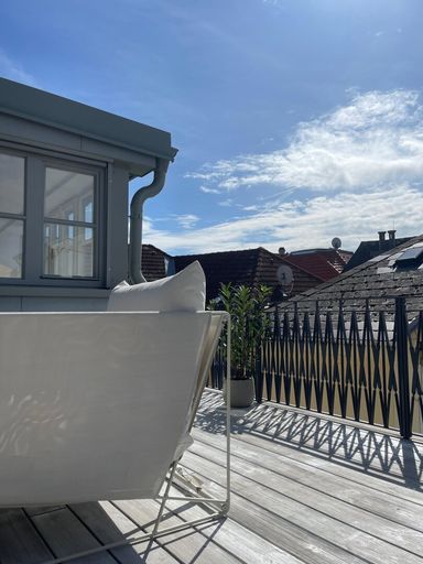Der Wohnbereich dieses Hauses befindet sich im Obergeschoß und besteht aus einem Vorraum, einem offenen Wohn / Essbereich, einem Bad / WC sowie eine Schlafbereich im Dachgeschoß. Vom Schlafbereich – welcher sehr hell und lichtdurchflutet ist – gelangen Sie auf die ca. 25m² große Dachterrasse, die zu jeder Jahreszeit zum Verweilen und Genießen einlädt. Die Dachterrasse stellt sicherlich aufgrund seiner Großzügigkeit und Einzigartigkeit im Schlossergässchen eines der Highlights der Wohnung dar.