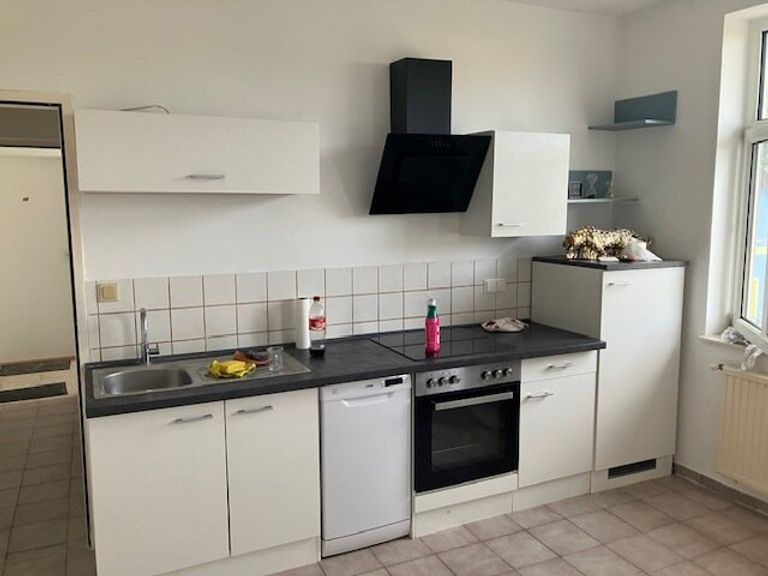- Wohnzimmer mit offener komplett eingerichteter Küche