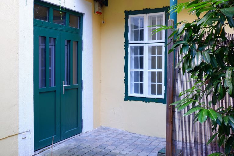 Die Wohnung besteht aus einer Küche (mit einer neuen vollwertig ausgestatteten Küchenzeile), sowie einem Wohnzimmer mit räumlich abgetrennten Schlafbereich sowie einem geräumigen und neu ausgestatteten Sanitärbereich (WT, Dusche, WC, Waschmaschine). Alle Fenster sind in Richtung des Innenhofs ausgerichtet. Zusätzlich kann auch die Terrasse im Innenhof mitbenutzt werden.