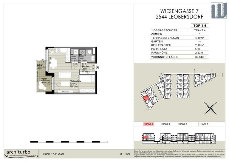 ACHTUNG: ein Garagenstellplatz um € 99,32 brutto muss mit gemietet werden - dieser Preis ist in der angegebenen Miete nicht enthalten.