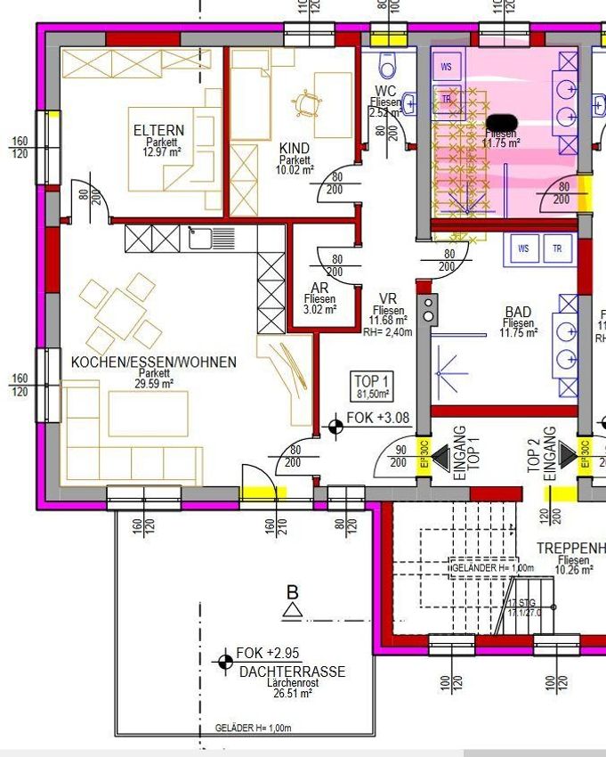 Wohnung Top1 liegt im ersten Stock und wurde eingeteilt in: