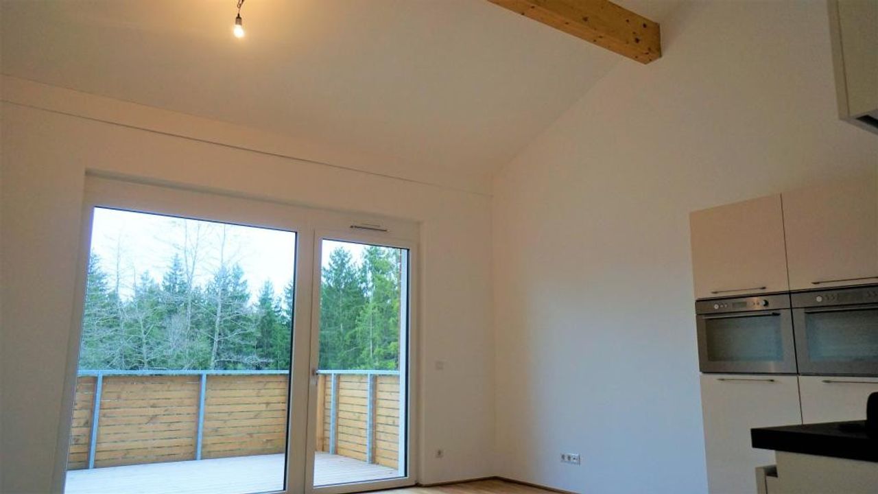 Hier kommt eine tolle, hochwertig ausgestattete 3 Zimmer-Dachgeschoßwohnung mit Balkon, Garage und Stellplatz ab 01.06.2026 zur Vermietung. Wir haben einen modern, hell gefliesten, hohen Eingangsbereich mit genügend Platz für Garderobe und Schuhe. Ein tolles Bad mit Dusche, Waschbecken, Waschmaschinenanschluss und Fenster. Ein extra WC mit Handwaschbecken. Zwei schöne, ruhige Zimmer mit Blick ins Grüne. Einen praktischen Abstellraum ebenfalls mit Waschmaschinenanschluss. Und den lichtdurchfluteten Wohn-Essbereich mit offen gestalteter, top moderner Küche die keine Wünsche offen lässt. Von hier aus gelangt man auch auf den sonnigen Balkon mit 10m² und Blick in den Wald. Sie können auch mit dem Lift in den...