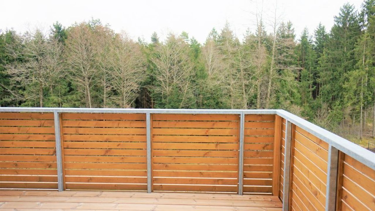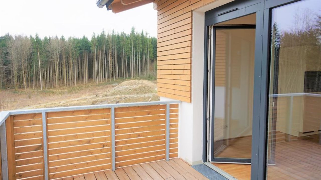 Von hier aus gelangt man auch auf den sonnigen Balkon mit 10m² und Blick in den Wald.