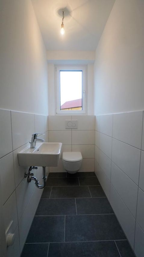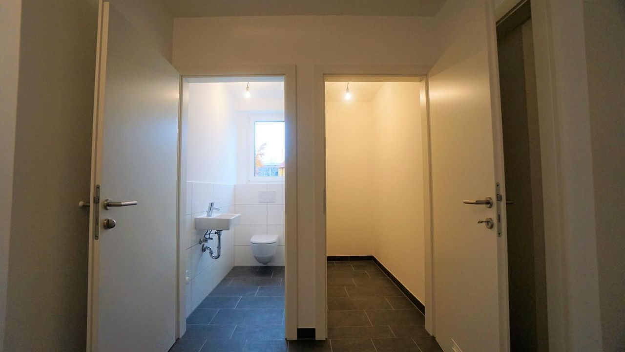 Ein schönes Bad mit Wanne, Waschbecken, Waschmaschinenanschluss und Fenster. Das WC mit Handwaschbecken. Ein Schlafzimmer mit ca. 15,5m² und ein Kinderzimmer oder Büro mit ca. 9,5m². Einen praktischen Abstellraum, welcher auch mit einem Waschmaschinenanschluss ausgestattet wurde.
