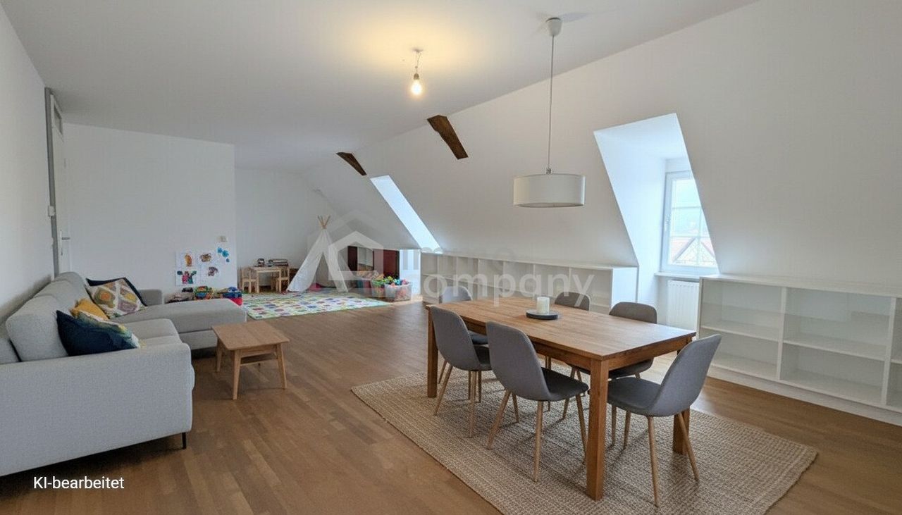 Das Herzstück der Immobilie ist der weitläufige Wohnbereich. Durch das offene Raumkonzept lassen sich Essbereich, eine großzügige Couchlandschaft und eine geschützte Kinderecke perfekt kombinieren. Einzigartig: Jedes Zimmer bietet einen traumhaften Stadtblick über die mittelalterlichen Dächer von Bregenz.
