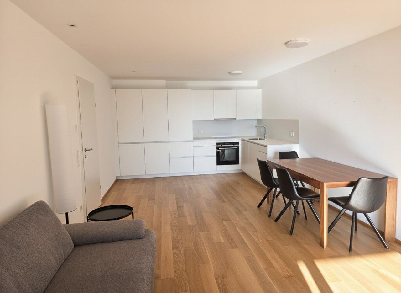 Der offen gestaltete Wohn- und Essbereich mit Küche bildet das Herzstück der Wohnung und öffnet sich zur sonnigen Terrasse, von der aus sich ein beeindruckender Seeblick genießen lässt. Die hochwertige Ausstattung, ein elegantes Badezimmer sowie praktische Nebenflächen sorgen für ein komfortables und durchdachtes Wohngefühl. Besonders hervorzuheben ist, dass die Wohnung teilmöbliert oder auch vollständig möbliert übernommen werden kann - ideal für alle, die ohne großen Aufwand einziehen möchten. Ein Kellerabteil und ein Tiefgaragenplatz runden dieses attraktive Angebot ab.
