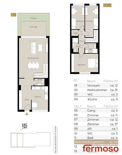 vor den Toren Wiens, in ruhiger und grüner Lage von 2333 Leopoldsdorf, erwartet Sie diese außergewöhnliche Maisonette-Wohnung. Die Wohnung erstreckt sich über zwei Ebenen und bietet mit rund 110 m² Wohnfläche, Terrasse und Eigengarten ein Wohngefühl wie im eigenen Haus.