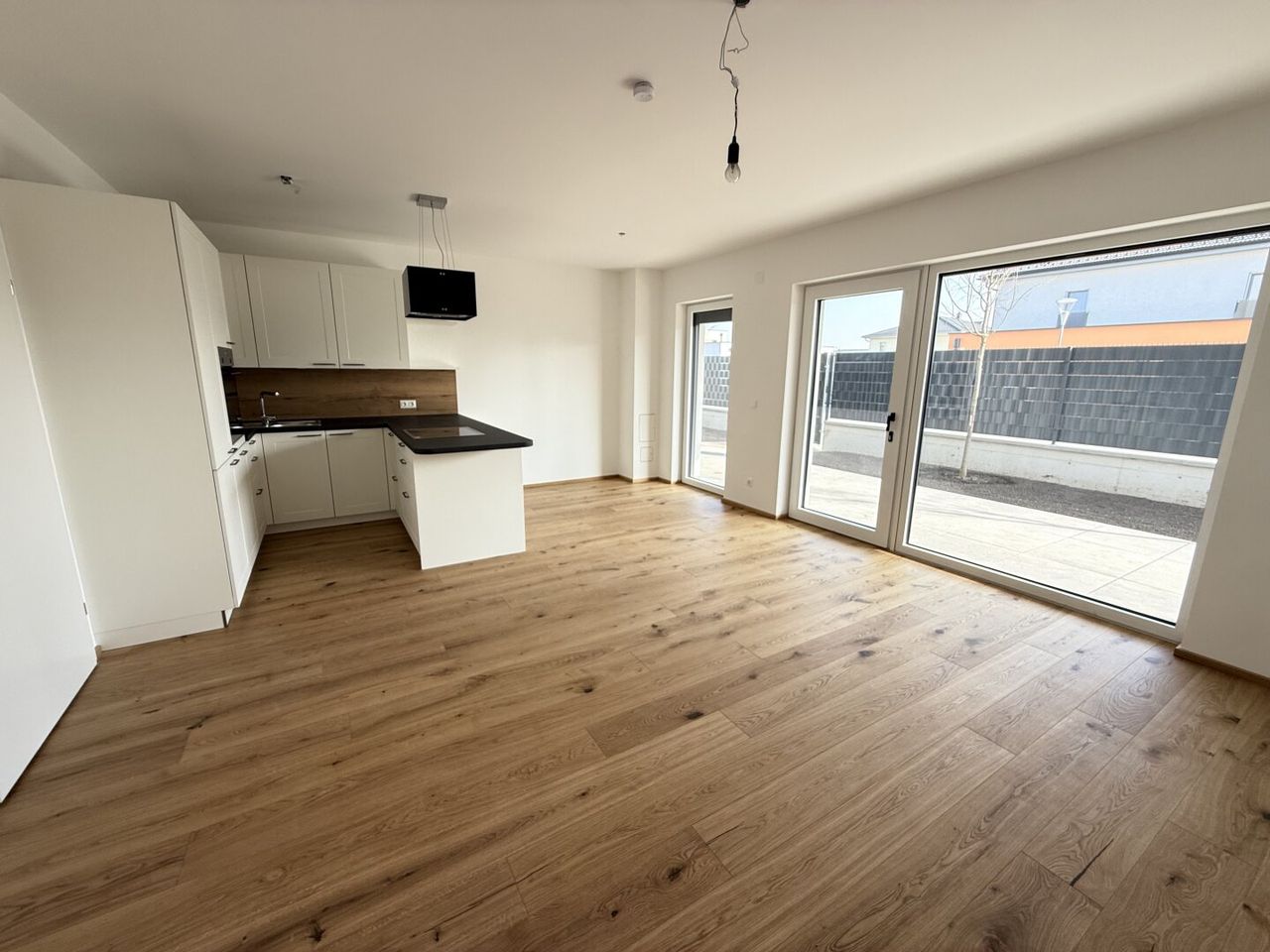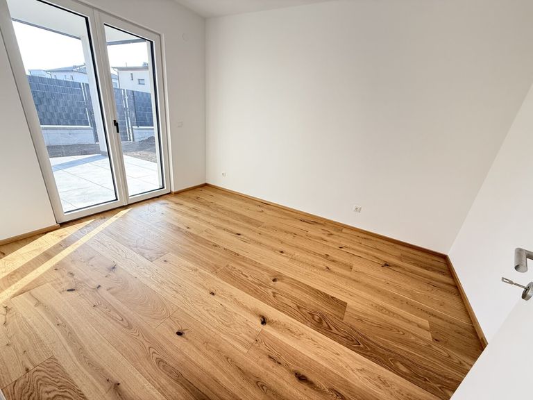 IHR Parkplatz direkt vor der Gartentüre mit direkten Zugang in den Garten und auf die Terrasse verkürzt ihren Weg in ihr neues Zuhause. - Die Terrassentüre ist als Eingangstüre ausgeführt und bringt sie auf kürzestem Weg direkt zur Küche und ins Wohnzimmer. Selbstverständlich kommen Sie auch über den allgemeinen Hauszugang in ihre neue Wohnung.