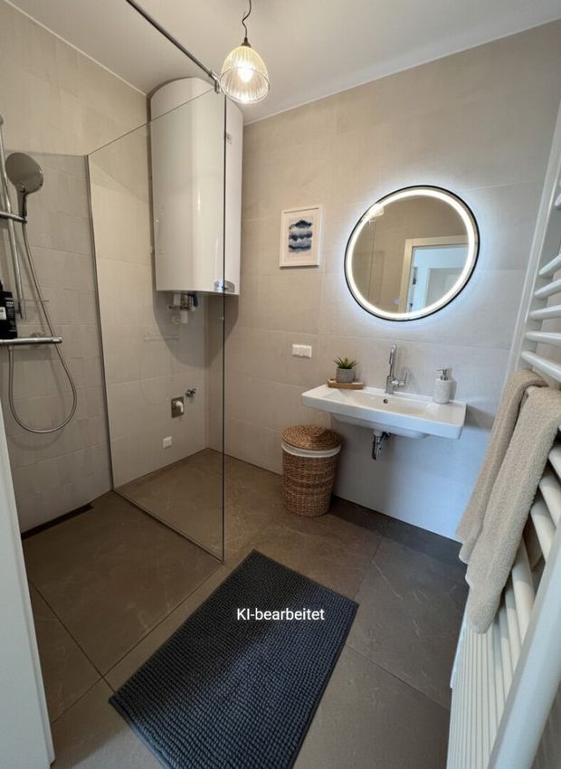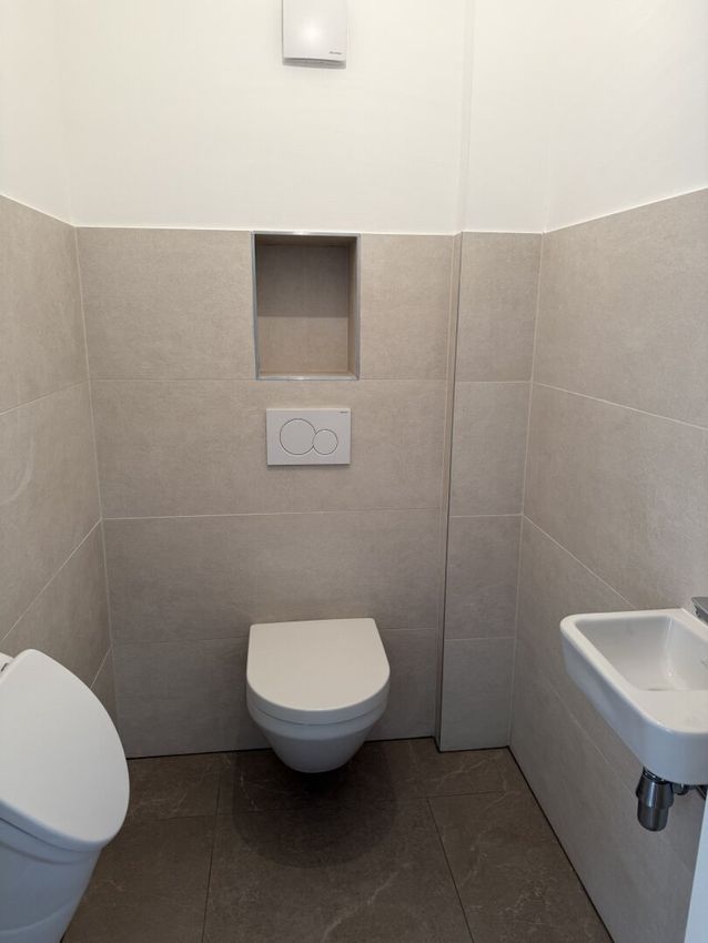 - elegante Marazzi-Designfliesen und Villeroy Boch Keramik in den Sanitärräumen