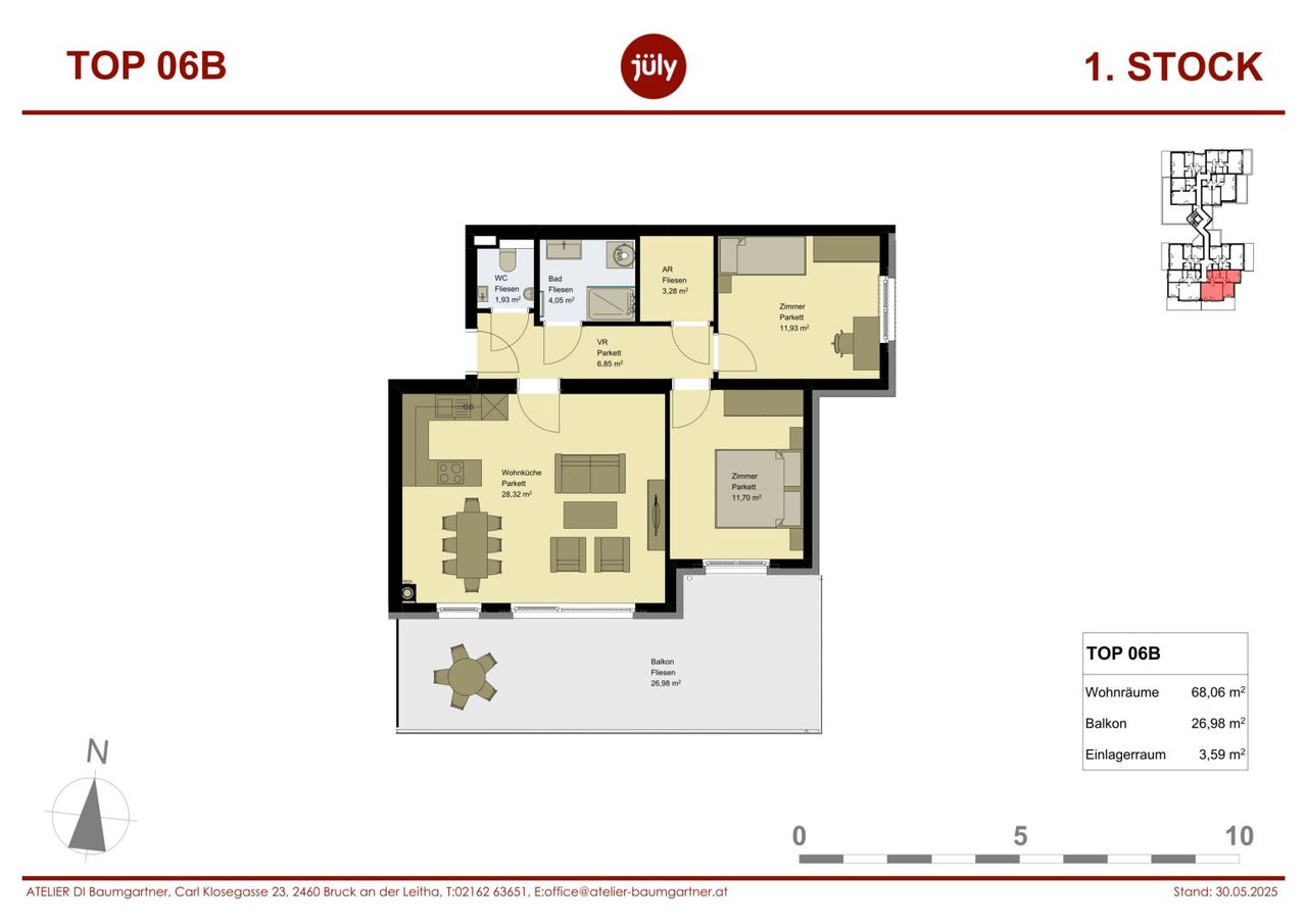 Diese helle, südostseitig orientiere Wohnung ist bestens aufgeteilt. Alle Räume sind zentral vom Vorraum aus begehbar. 2 Schlafzimmer, ein großzügiges Wohn-Esszimmer, ein Abstellraum in der Wohnung und die großzügige Terrasse bieten viel Platz zum Leben. Die Wohnfläche von 68m² wird ergänzt durch die 27m² südseitige Terrasse. Ein Ausgang vom Wohnzimmer und auch von einem Schlafzimmer führen auf die Terrasse! Ein Sessel zum Lesen, ein großer Tisch für die gesamte Familie und auch noch für Freunde, eine Spielecke für die Kinder. Auf dieser riesiegen Terrasse hat alles Platz!