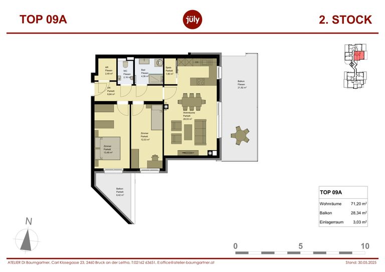 In zwei Gebäudentrakte entstehen insgesamt zwanzig hochwertig ausgestattete, moderne Mietwohnungen mit Wohnflächen zwischen 44 m² und 97 m². Alle Wohnungen und Nebenräume sind stufenlos erreichbar. In der Miete inkludiert ist bei jeder Wohnung ein kostenloser ÜBERDACHTER Parkplatz. Wohnungen mit 2 oder 3 Schlafzimmer stehen sogar 2 Parkplätze zur Verfügung.