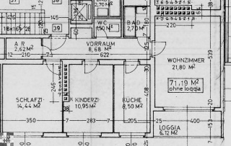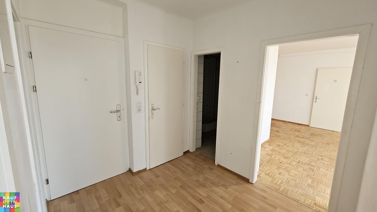 - Vorraum, Flur - Wohn und Esszimmer mit Balkon - Schlafzimmer - Kinderzimmer - Küche mit Fenster (die Wohnung wird ohne Kücheneinrichtung vermietet) - Badezimmer mit Dusche - WC - Abstellraum