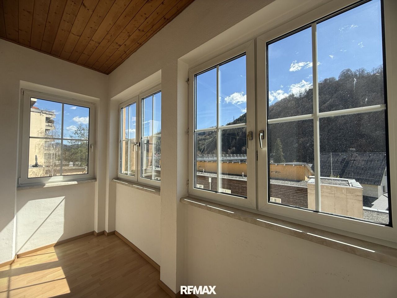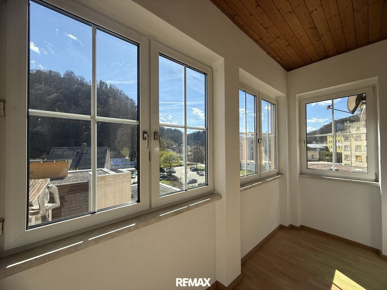 Besonders hervorzuheben ist der verglaste Balkon mit traumhaftem Blick auf den Schlossberg – ein idealer Ort zum Entspannen. Ein begehbarer Kleiderschrank bietet zusätzlichen Stauraum und Komfort.