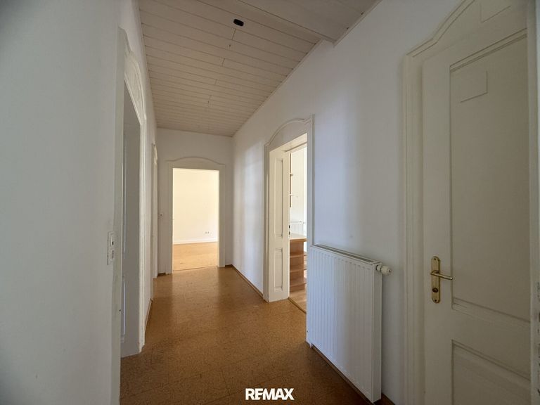 Diese großzügige Wohnung im 2. Obergeschoss besticht durch ihre durchdachte Raumaufteilung mit einer hellen Wohnküche sowie vier separaten Schlafräumen, die alle direkt vom Gang erreichbar sind. Die lichtdurchfluteten und hohen Räume schaffen ein angenehmes Wohnambiente, unterstrichen von hochwertigen Parkett- und Korkböden.
