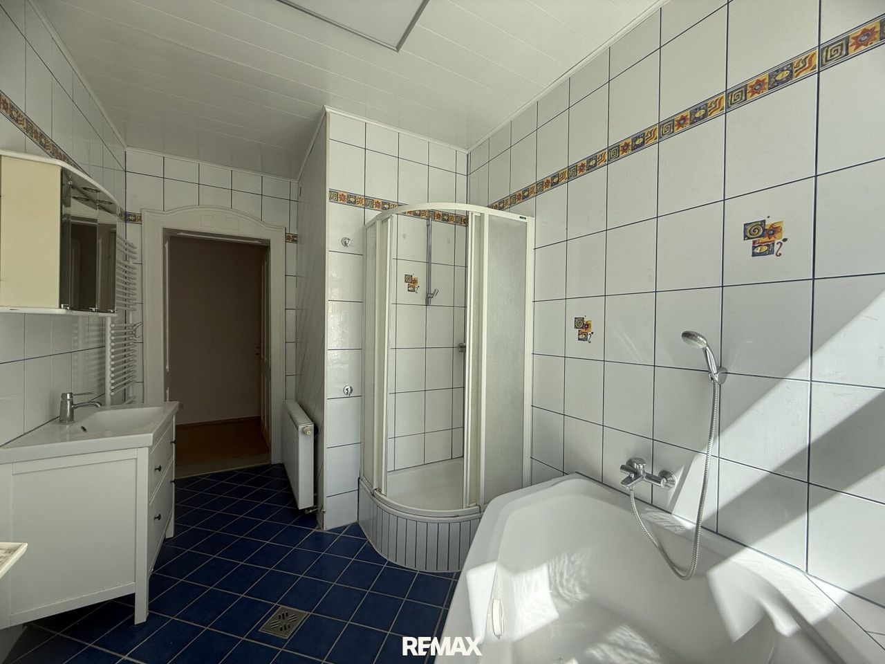 Das Badezimmer ist mit einer Komfortbadewanne und einer separaten Dusche ausgestattet, Bad und WC sind getrennt, was den Wohnkomfort zusätzlich erhöht.