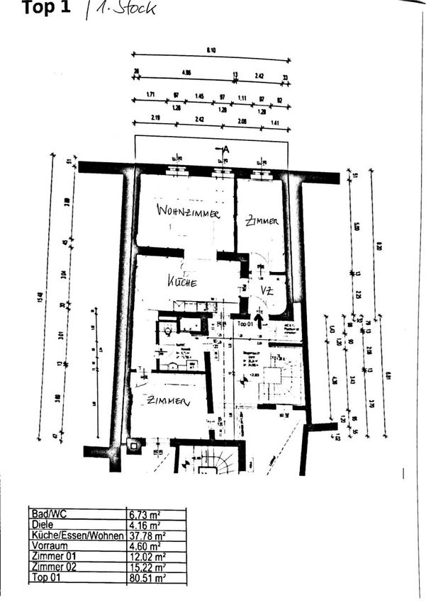 Die Wohnung liegt im 1. Stock (ohne Lift) und ist über ein zentrales Stiegenhaus bequem erreichbar.