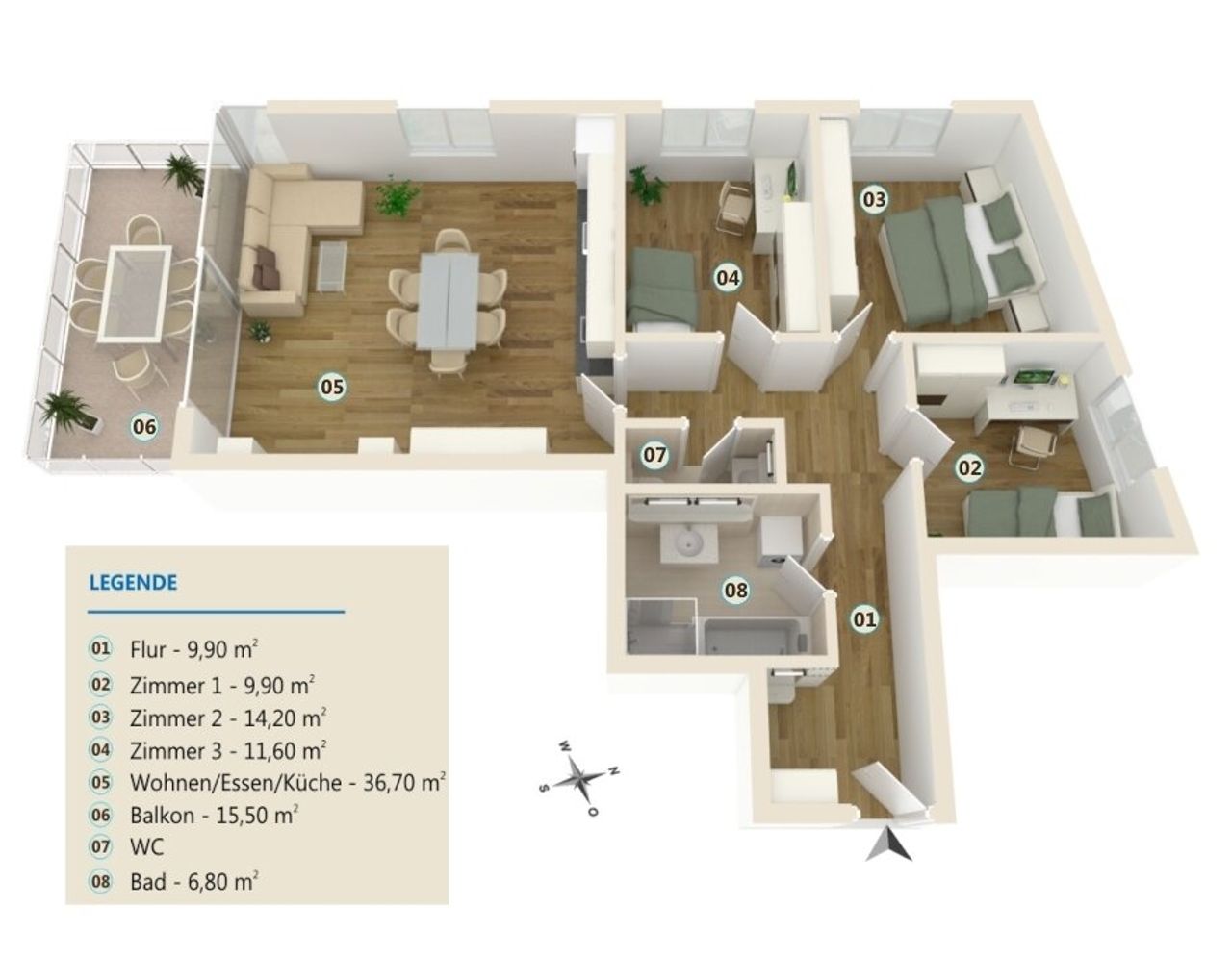 Hinweis: Die dargestellten Fotos stammen aus einer Wohnung im selben Gebäude mit identischem Grundriss und gleichwertiger Ausstattung.