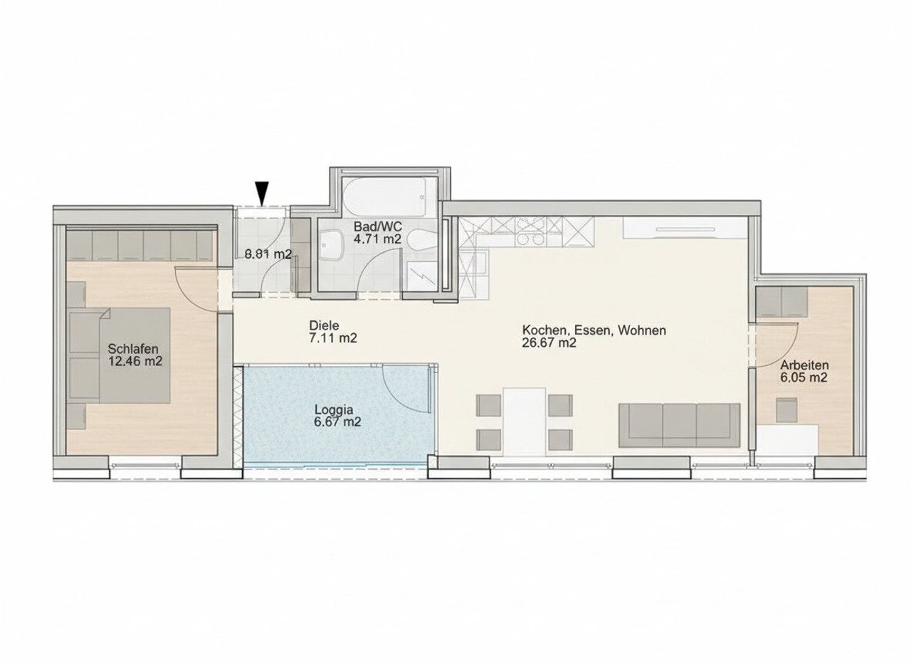 In der Pontenstraße 28a in Lustenau erwartet Sie diese gepflegte und moderne 2,5-Zimmer-Terrassenwohnung mit rund 56,10 m² Wohnfläche, die durch ihre durchdachte Raumaufteilung und ein angenehmes Wohnambiente überzeugt. Ideal geeignet für Singles und Paare, die ein kompaktes Zuhause mit praktischem Mehrwert suchen. Der helle Wohn- und Essbereich mit Küche bildet den zentralen Lebensmittelpunkt und bietet direkten Zugang zur Loggia, die als geschützter Außenbereich zusätzlichen Wohnkomfort schafft. Ein besonderes Highlight ist das zusätzliche kleine Zimmer, das sich ideal als Homeoffice, Ankleide oder persönlicher Rückzugsort nutzen lässt. Ergänzt wird das Angebot durch ein Badezimmer sowie praktische Nebenflächen.