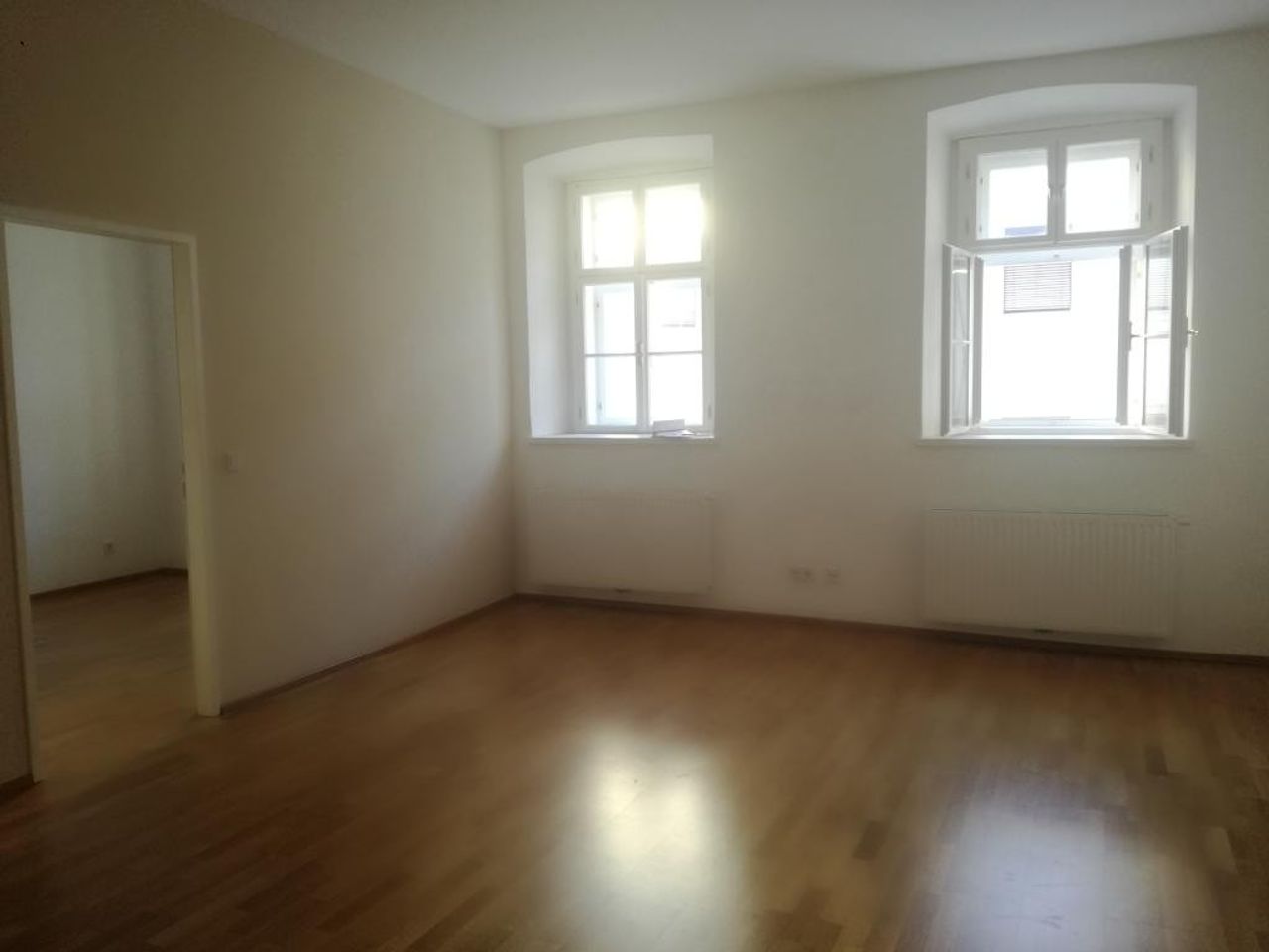 Wohnung im 1. Stock eines denkmalgeschützten Innenstadthauses, hofseitig gelegen. Die Wohnung besteht aus einem Vorzimmer, Bad und WC, einer Küche, einem begehbaren Schrankraum, einem Wohnzimmer und einem Schlafzimmer. Holzparkettböden, Fliesenböden, Hauszentralheizung. Heizkosten- und Warmwasser-aconto sind enthalten, Stromkosten werden direkt mit dem Anbieter, nach dem Verbrauch, verrechnet. Ein Kellerabteil gehört ebenfalls zur Wohnung. Keine Haustiere erlaubt. Sofort beziehbar. Dieses 2017 renovierte Gebäude liegt in der Fußgängerzone der Landeshauptstadt Eisenstadt. In der Innenstadt finden sich vielfältige Einkaufs- und Versorgungsmöglichkeiten. In der unmittelbaren Nachbarschaft befindet sich der Domplatz, von dem aus alle Busverbindungen abgehen. Das Schloß Esterhazy ist in ein paar Gehminuten erreichbar...