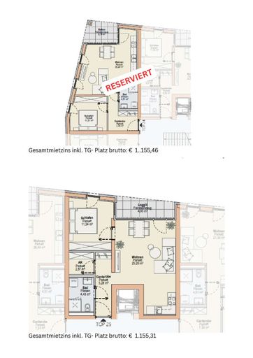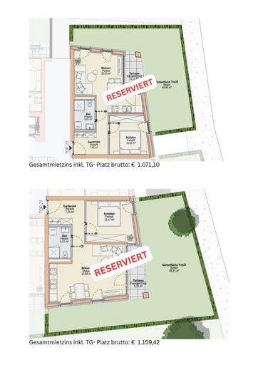 Der monatliche Gesamtmietzins beinhaltet die Miete für die jeweilige Wohnung und den zugehörigen Tiefgaragen- oder Außenabstellplatz sowie Betriebs- und Heizkosten.