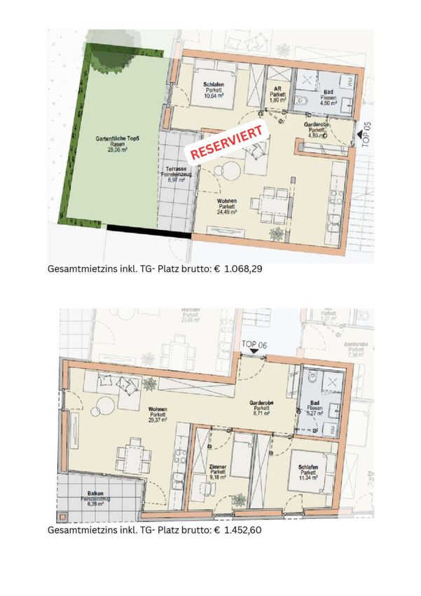 3-Zimmer-Gartenwohnung mit 61,94 m², Terrasse, Kellerabteil und Tiefgaragenplatz - Gesamtmietzins: € 1.480,71 - RESERVIERT