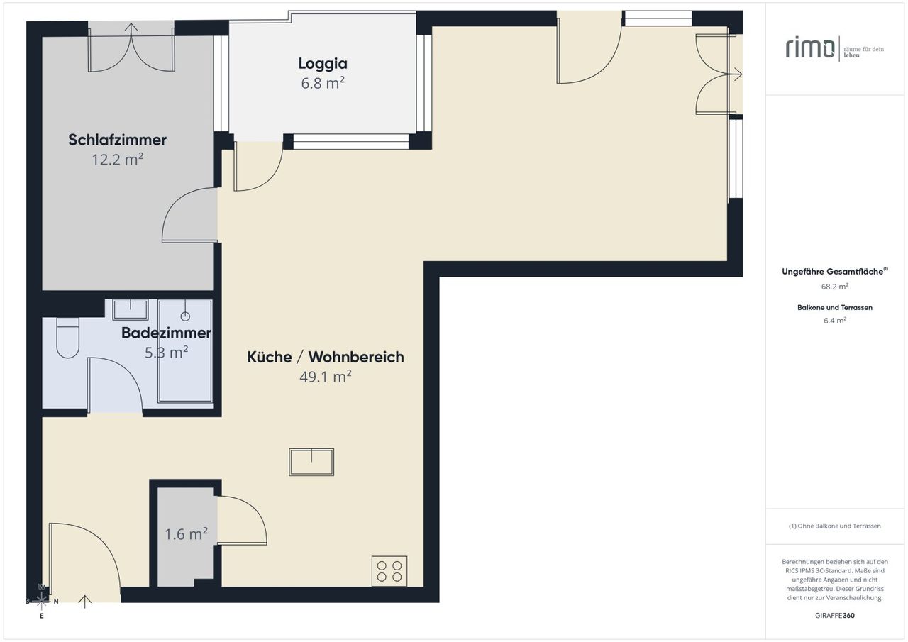 Auf rund 68 m² Wohnfläche überzeugt die Wohnung mit einem durchdachten Grundriss und einer angenehmen Nord-West-Ausrichtung, die lichtdurchflutete Räume und eine freundliche Atmosphäre schafft – ideal für modernes, urbanes Wohnen.