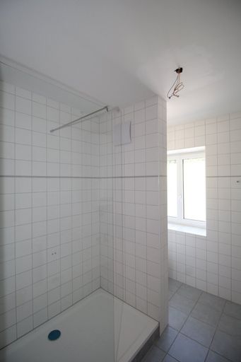 Neben dem großzügigen Wohnbereich mit Küche und Esszimmer verfügt die Wohnung auch über drei Schlafzimmer. Das Badezimmer ist mit einer Dusche und einem Fenster ausgestattet.
