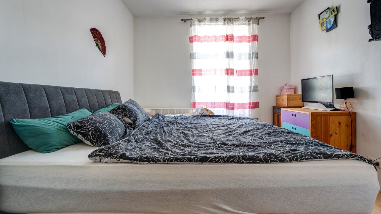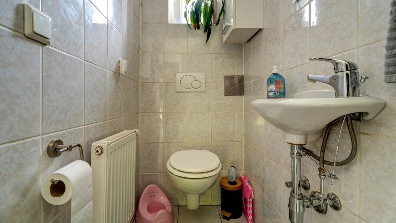 Hier befinden sich auch das separat begehbare WC mit Fenster sowie das Badezimmer mit Badewanne, wodurch Funktionalität und Wohnkomfort ideal kombiniert werden.