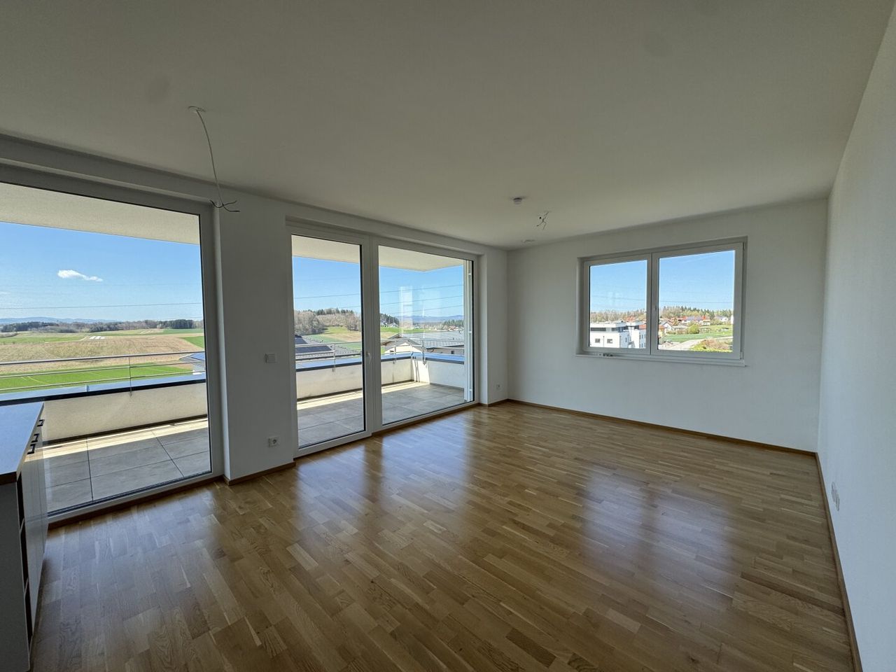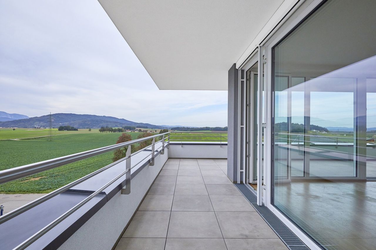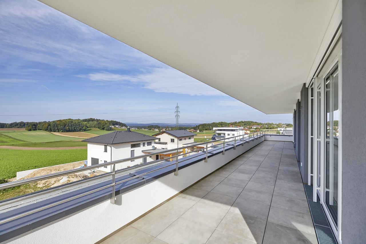 Ein besonderes Highlight dieser Wohnung ist die ca. 20m² große Terrasse mit traumhaftem Weitblick ins Grüne. Hier genießen Sie entspannte Sonnenstunden, laue Sommerabende und einen freien Blick bis zur umliegenden Berglandschaft – ein privater Rückzugsort mit Panorama-Charakter.