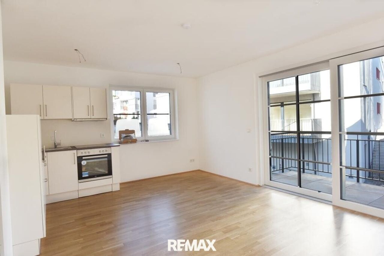 Vom Wohn- und Schlafzimmer aus gelangen Sie direkt auf den Balkon, der zusätzlichen Freiraum im Alltag bietet.