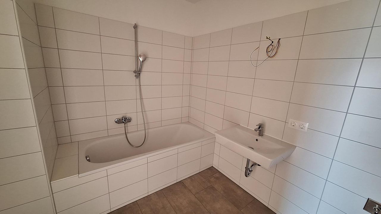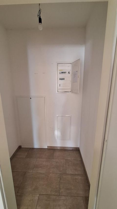 Die Wohnung ist aufgeteilt in Vorraum, Abstellraum, Zimmer, Schlafzimmer, Badezimmer mit Badewanne und WC.