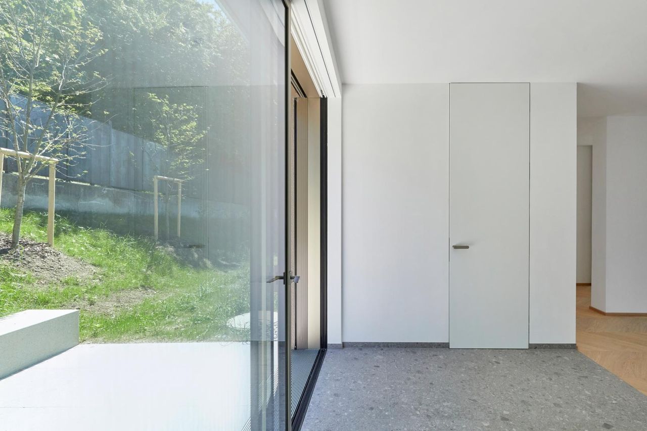 + hochwertige Alu- und Holzelemente für Fenster und Terrasse, teils rahmenlos und sehr schmal
